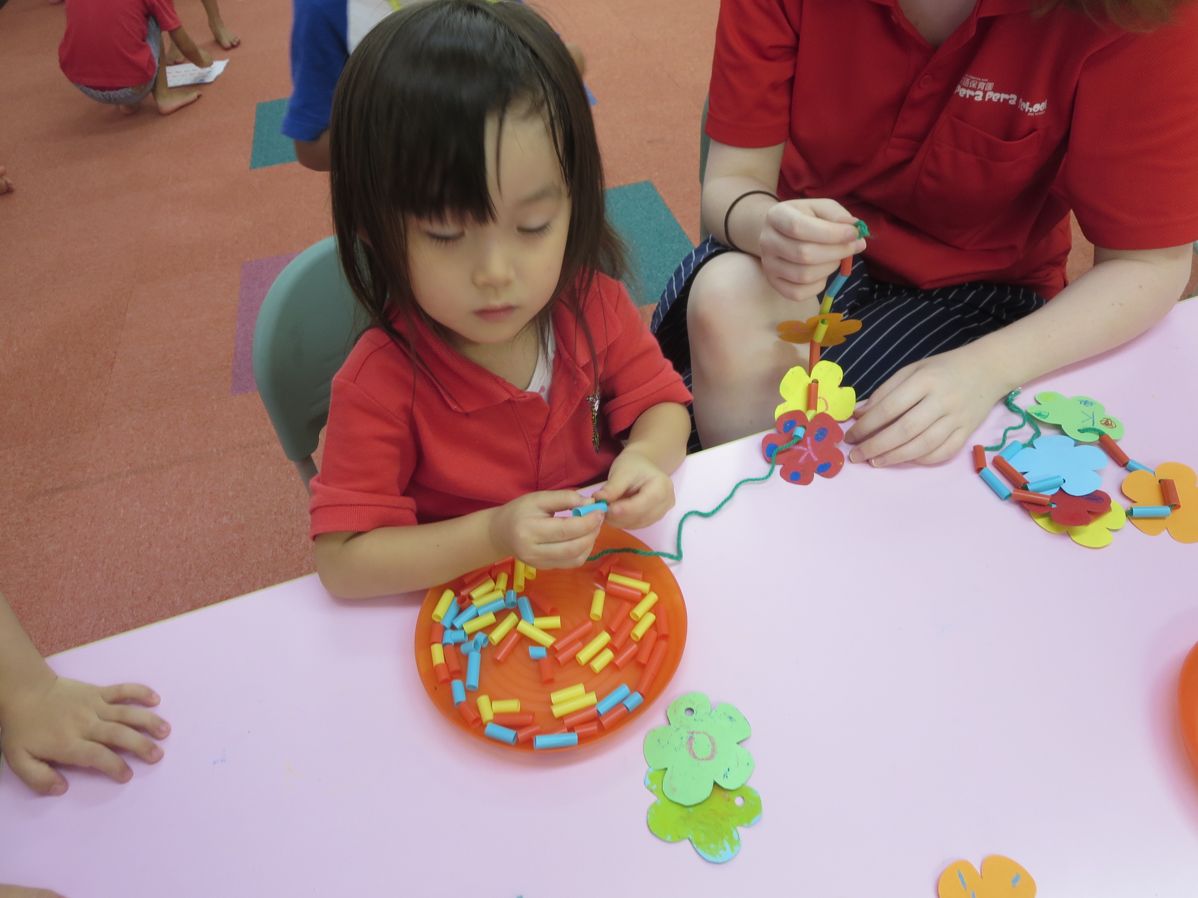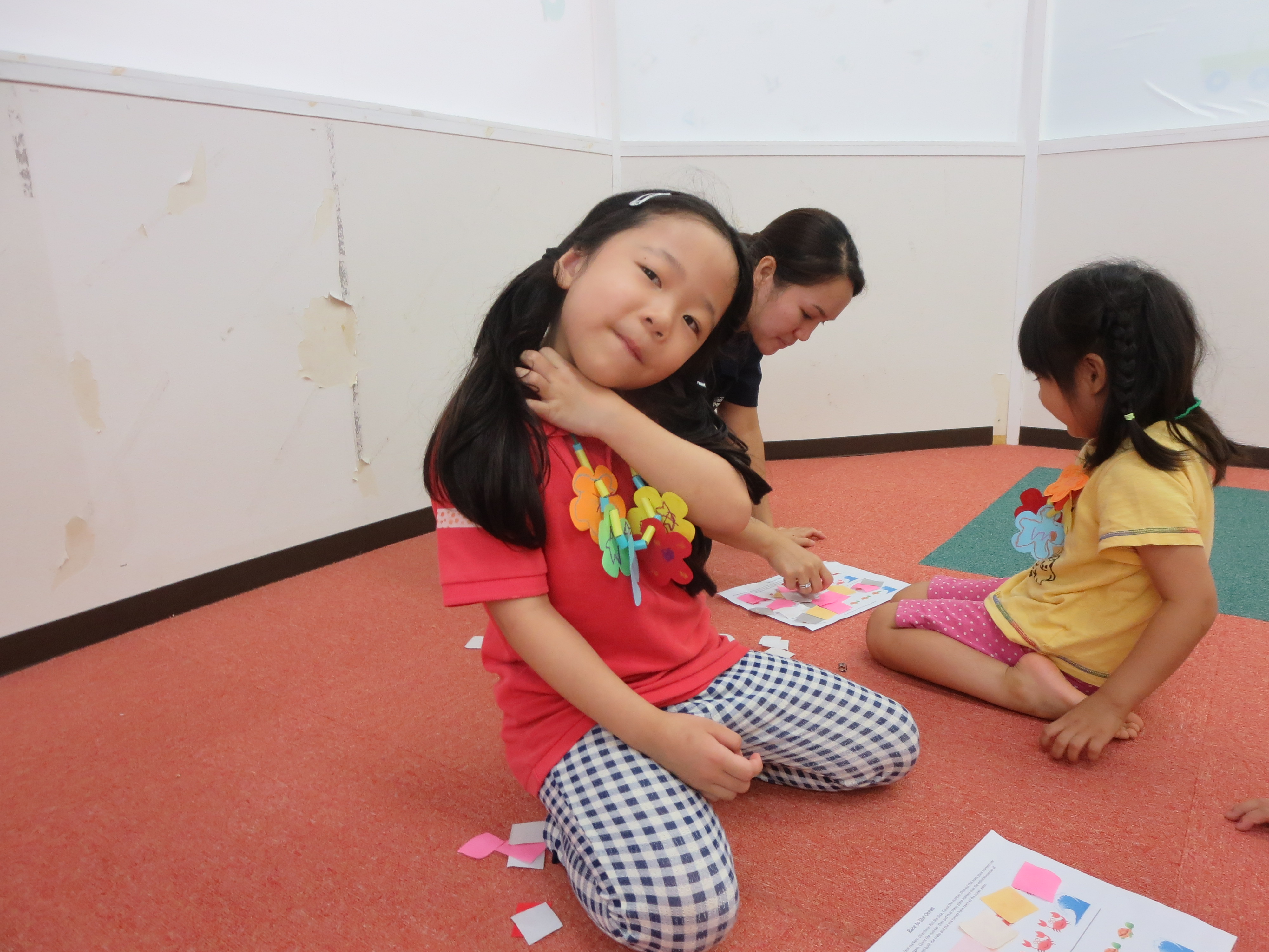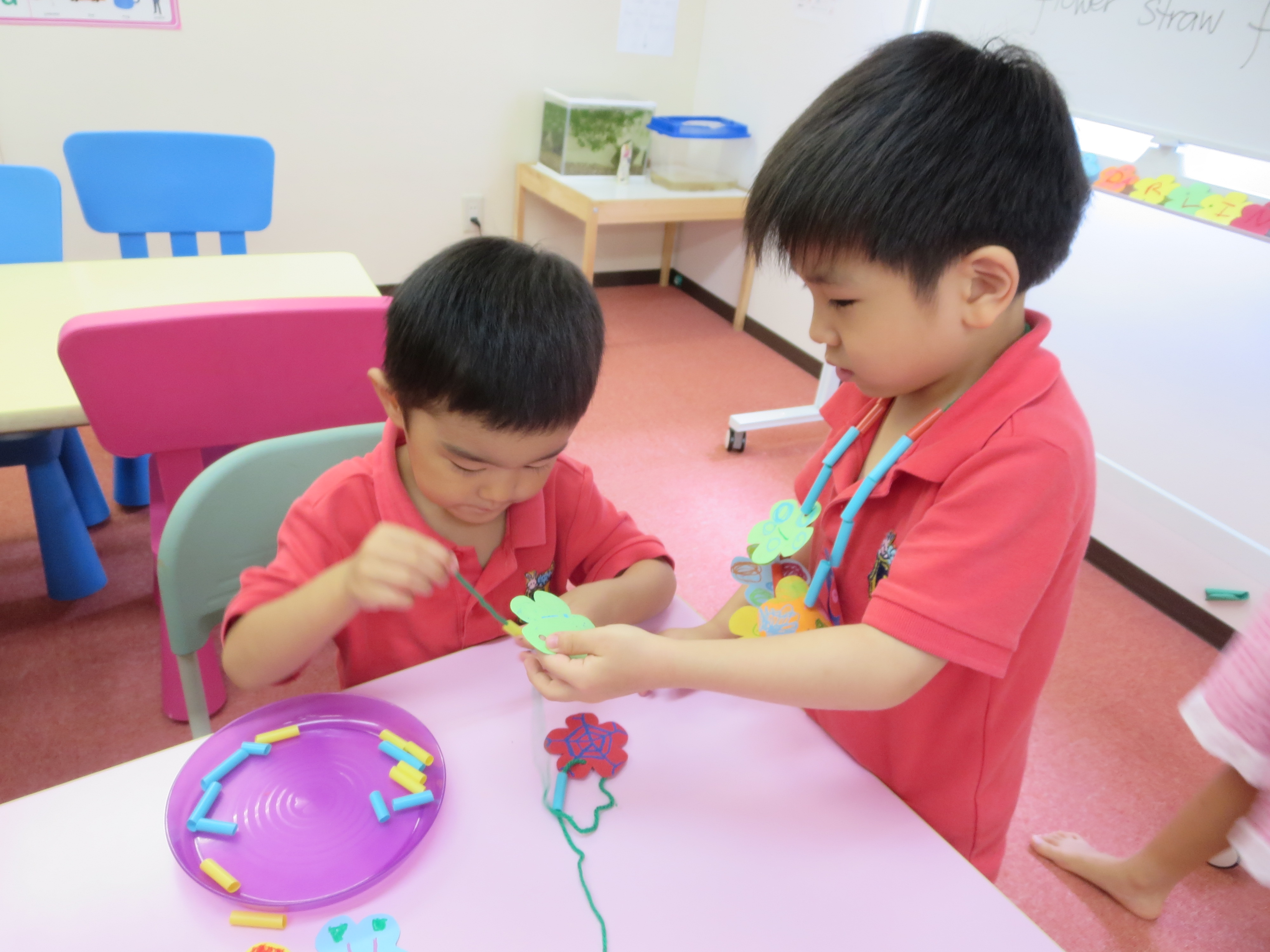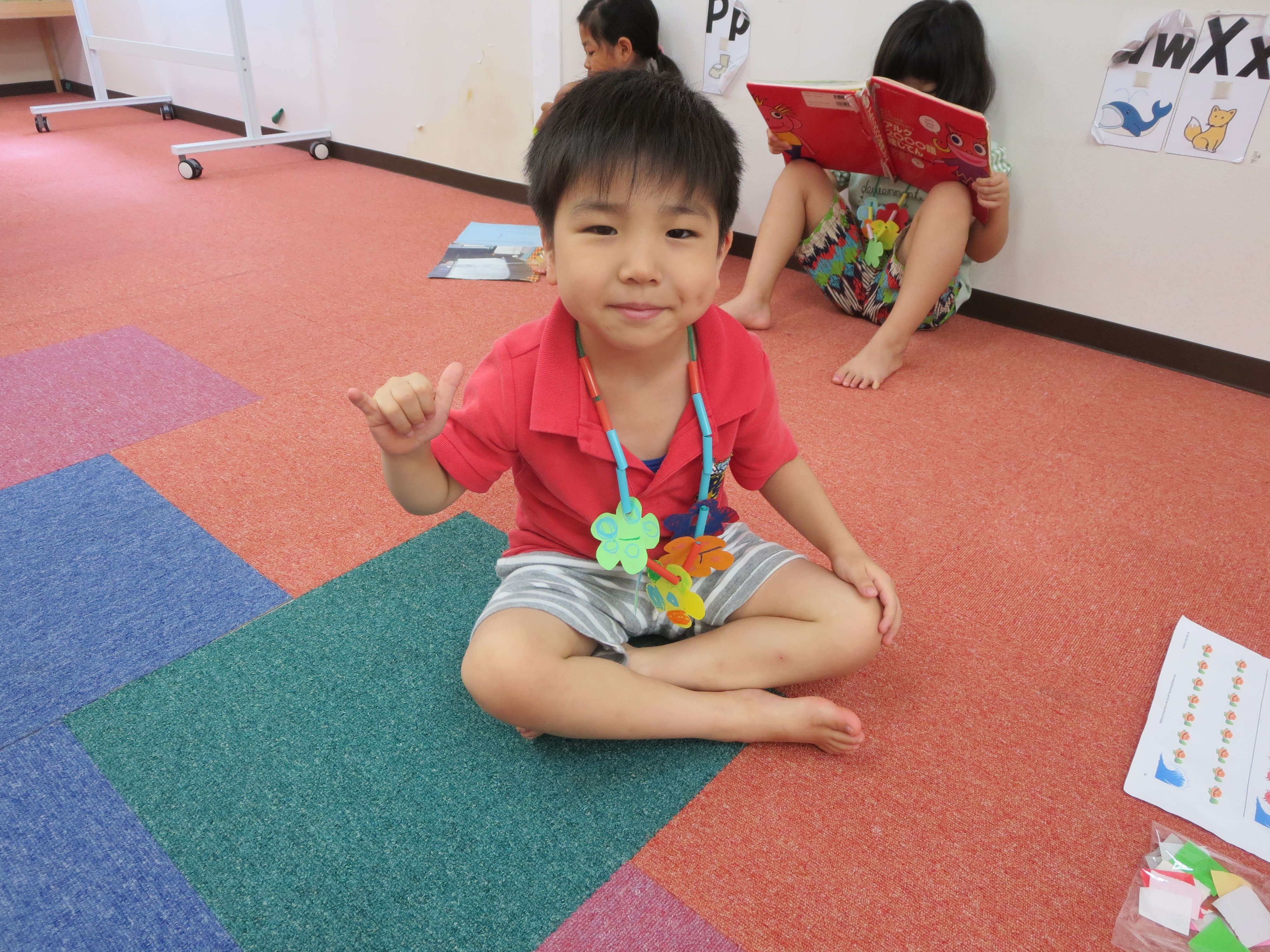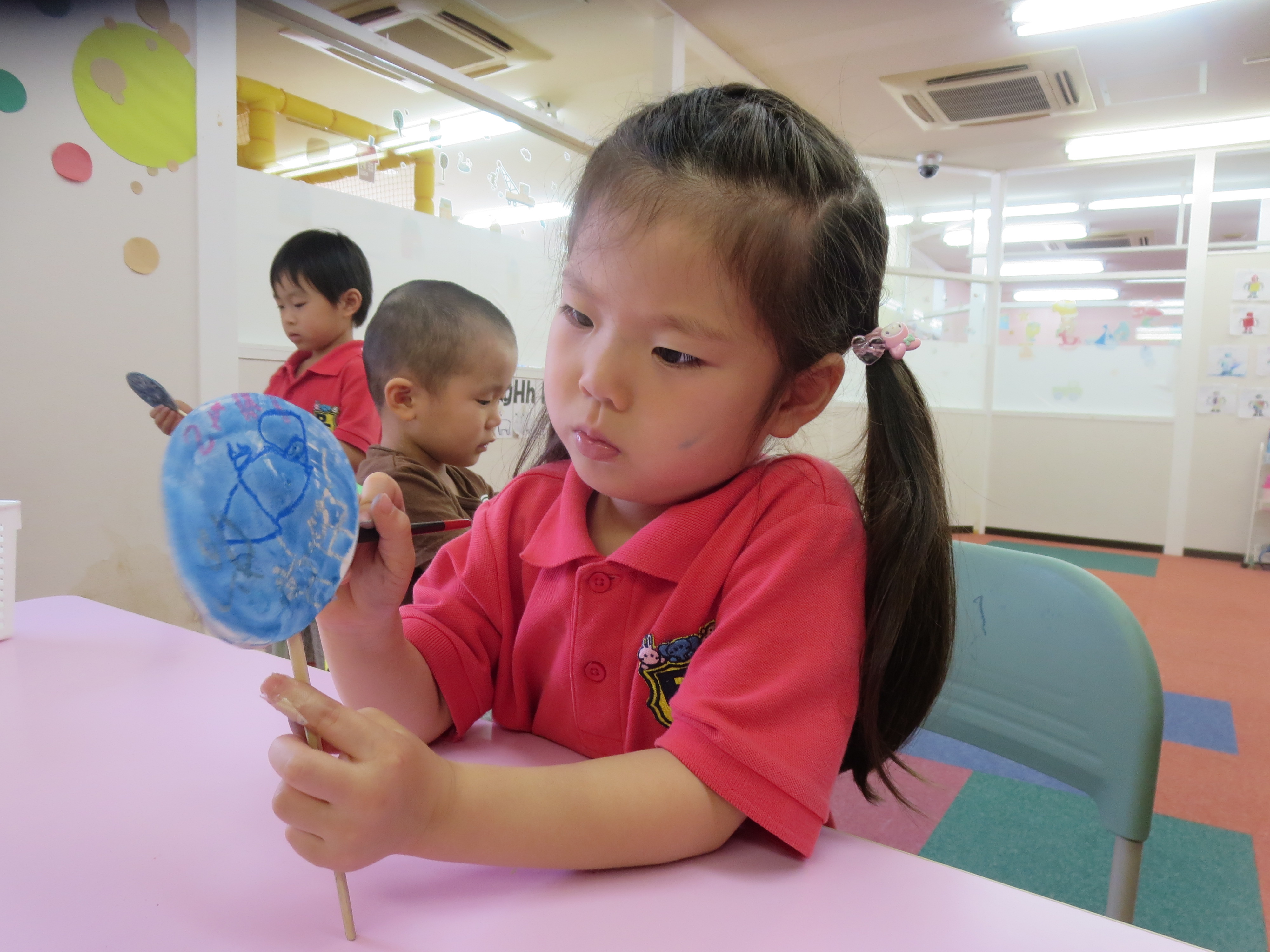 完成した作品を先生やお友だちにみんな笑顔でみせてくれます!!