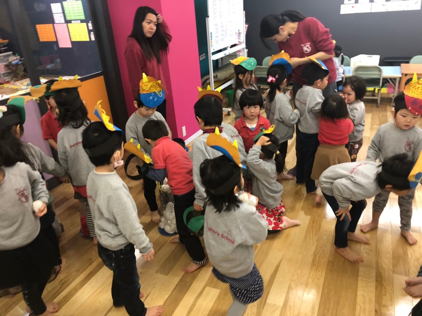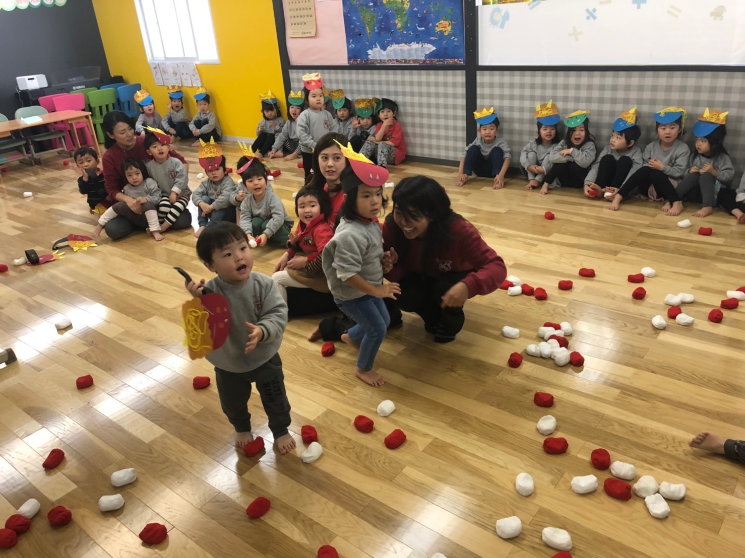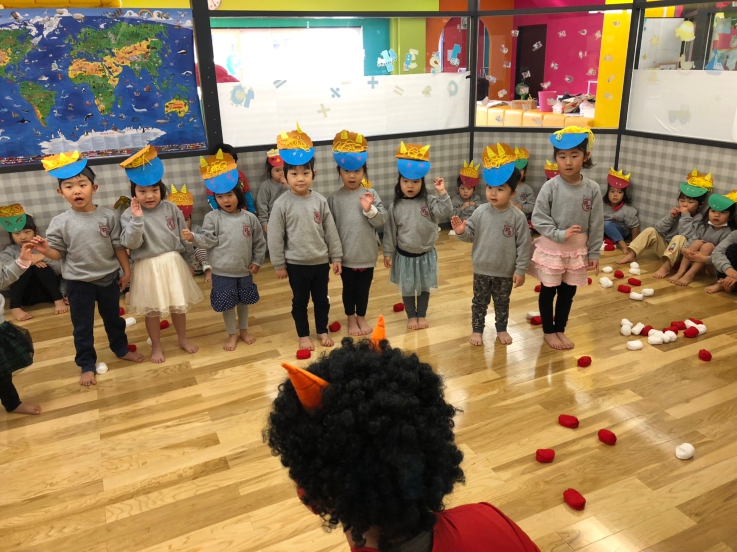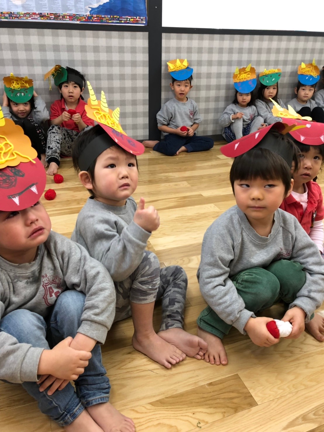 みんな “go away”と鬼退治をし、みんなの心の中にいる鬼さんを退治してくれました!