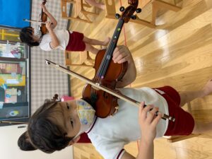 今日はPE lesson と Violin Lessonの日でした。PE Lessonでは鉄棒、どのクラスも頑張って取り組んでくれました☆