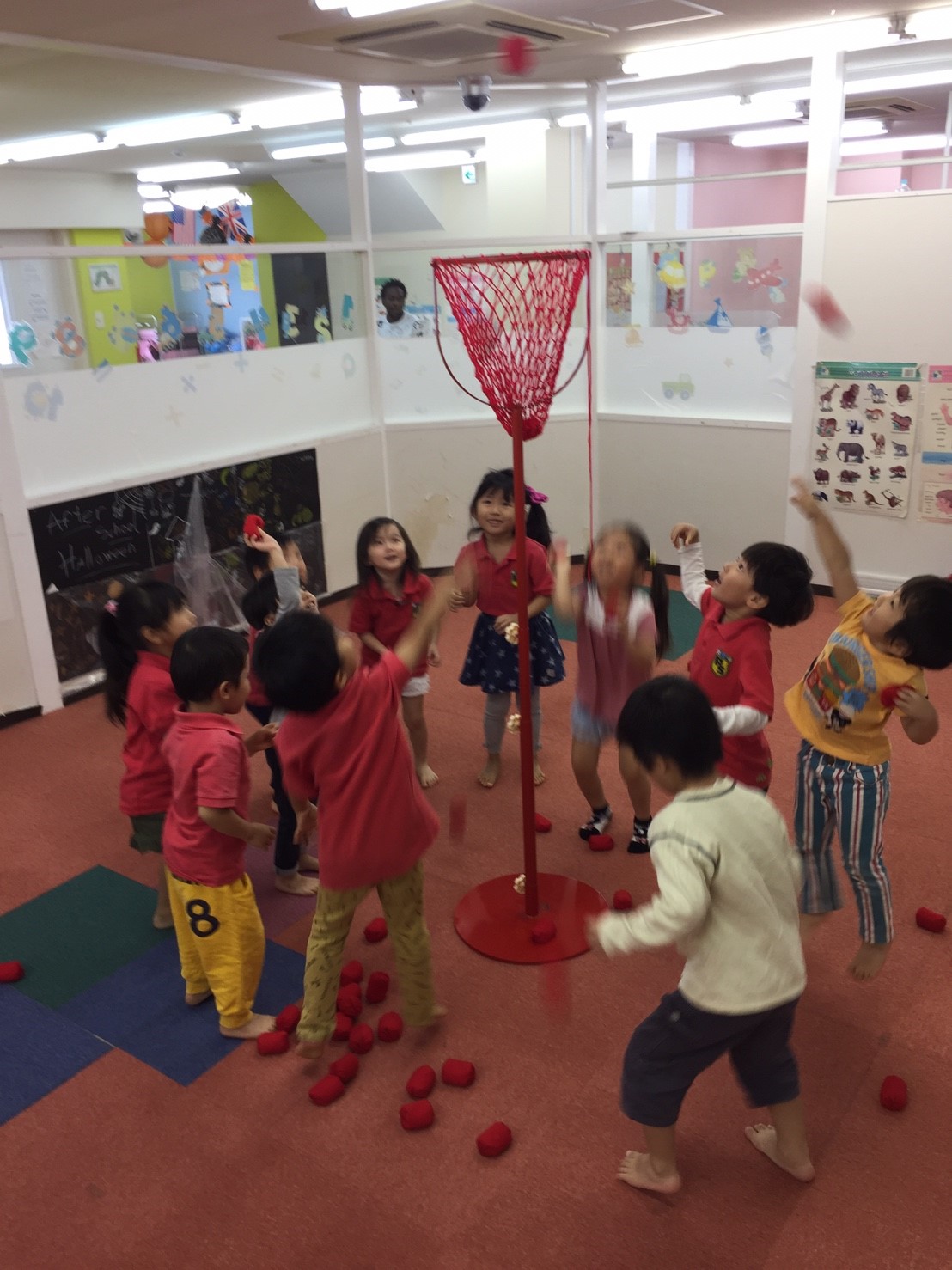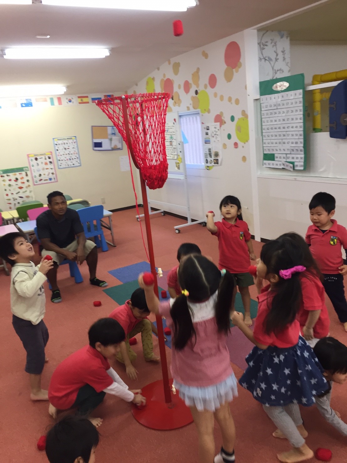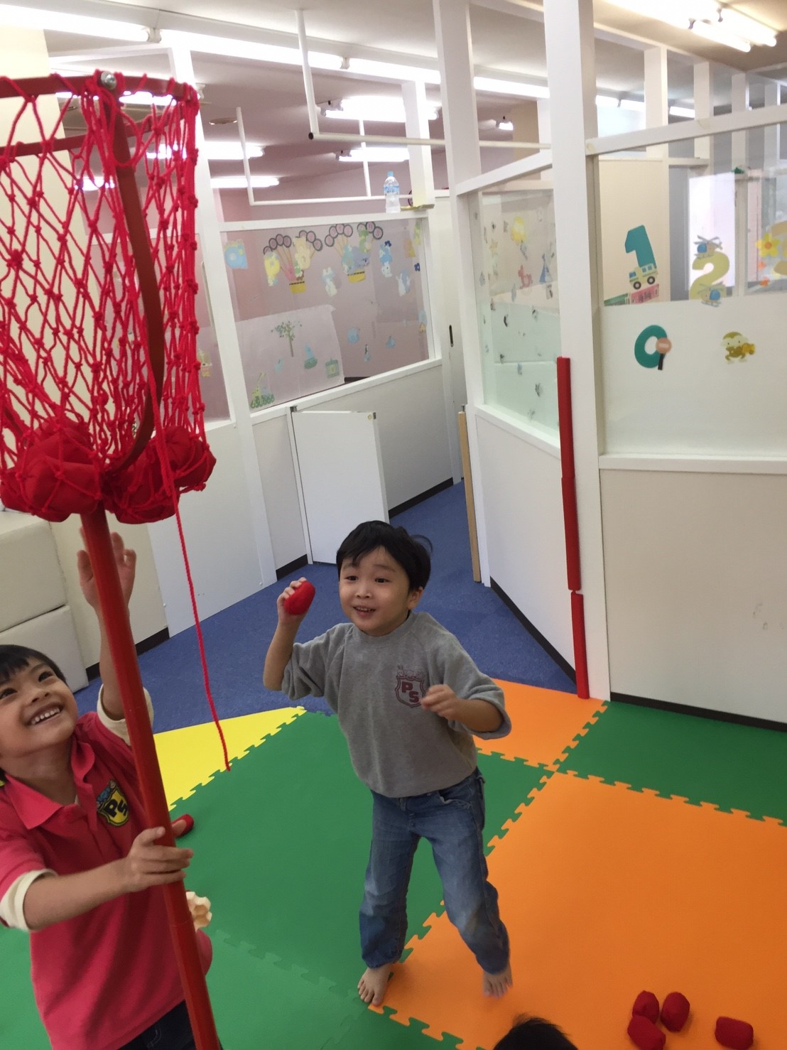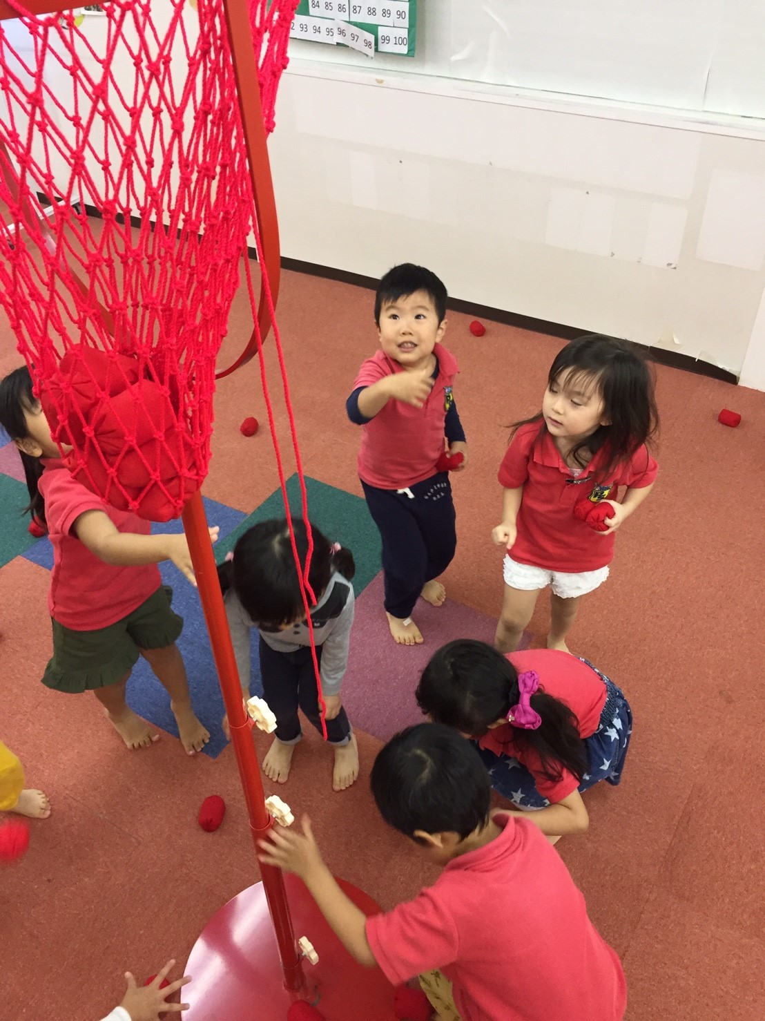 今日は初めて玉入れの練習をしました!