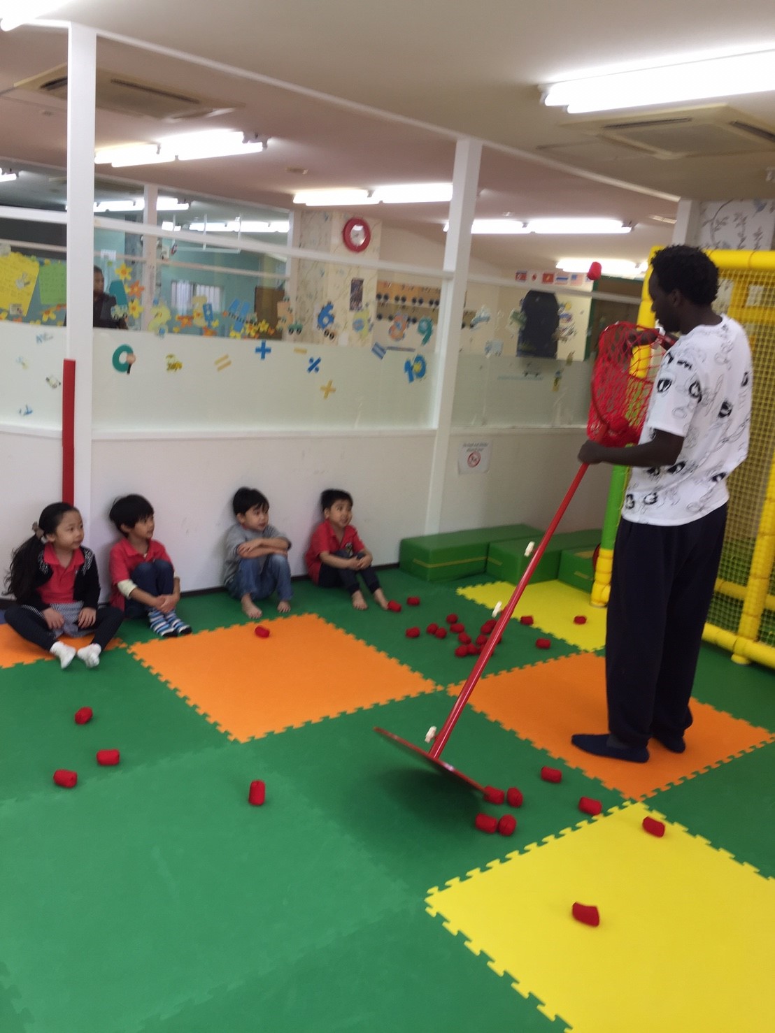 朝トレーナーを着て登園する子ども達もすぐに”I’m hot!”とバックに入れている光景をよくみかけます!!