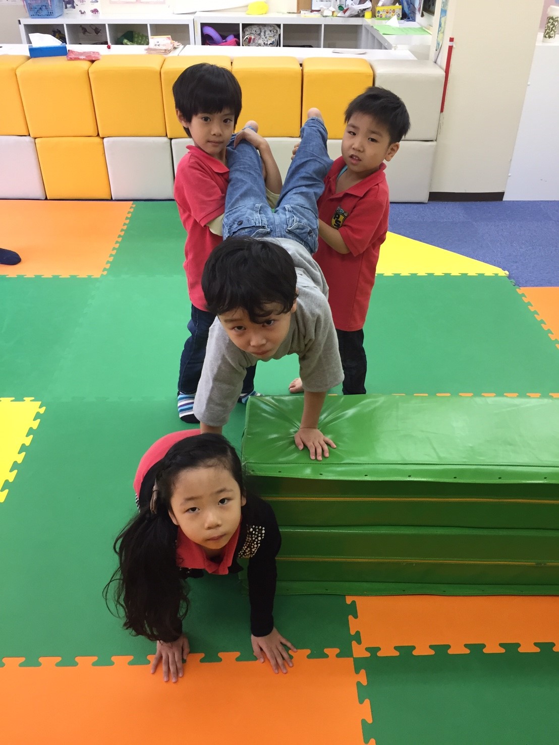 大きいお友だちは組み体操の練習もがんばっています!毎週つな先生のレッスンを頑張っているのでみんなで力を合わせてかっこ良い姿を見せてくれました!涙