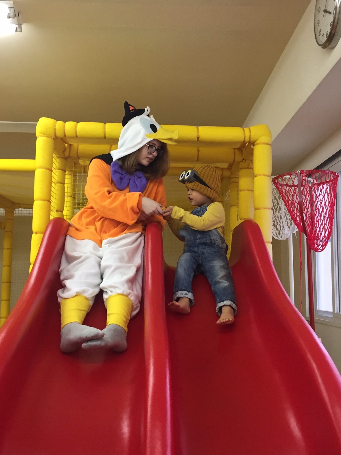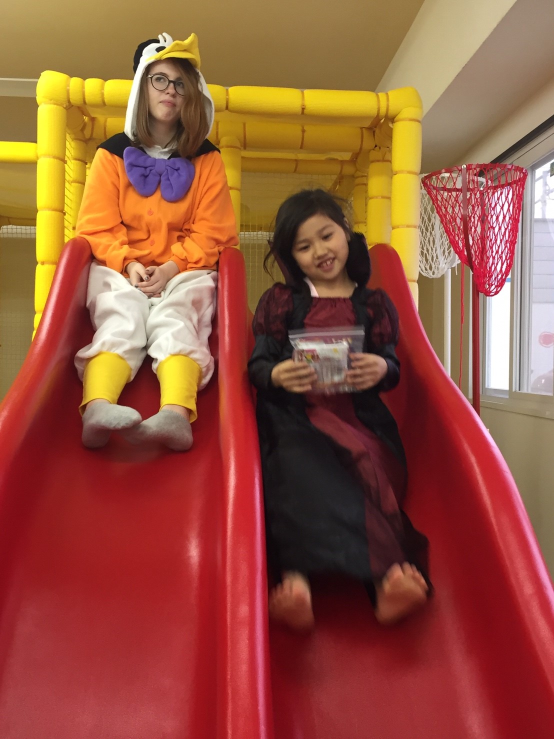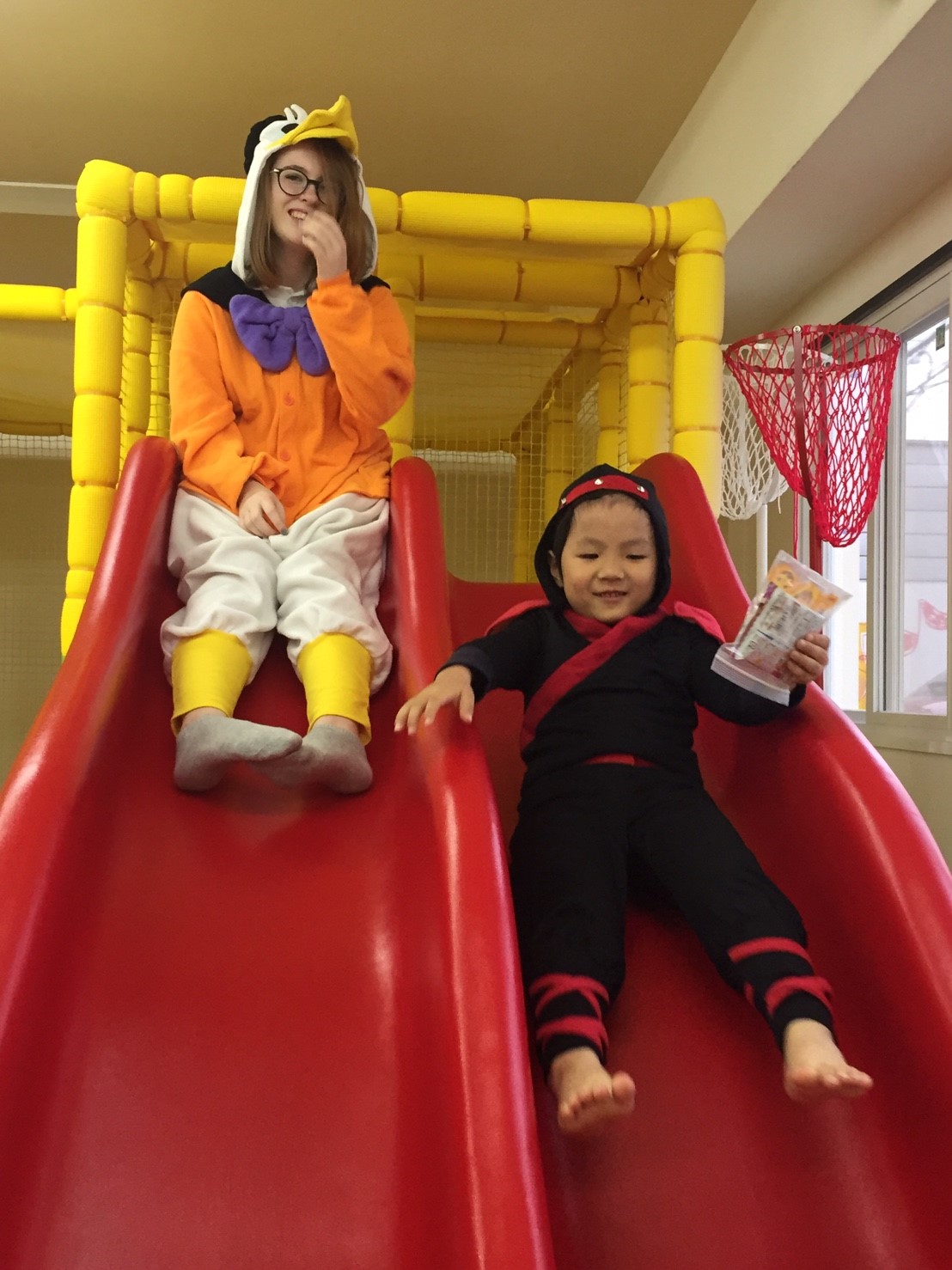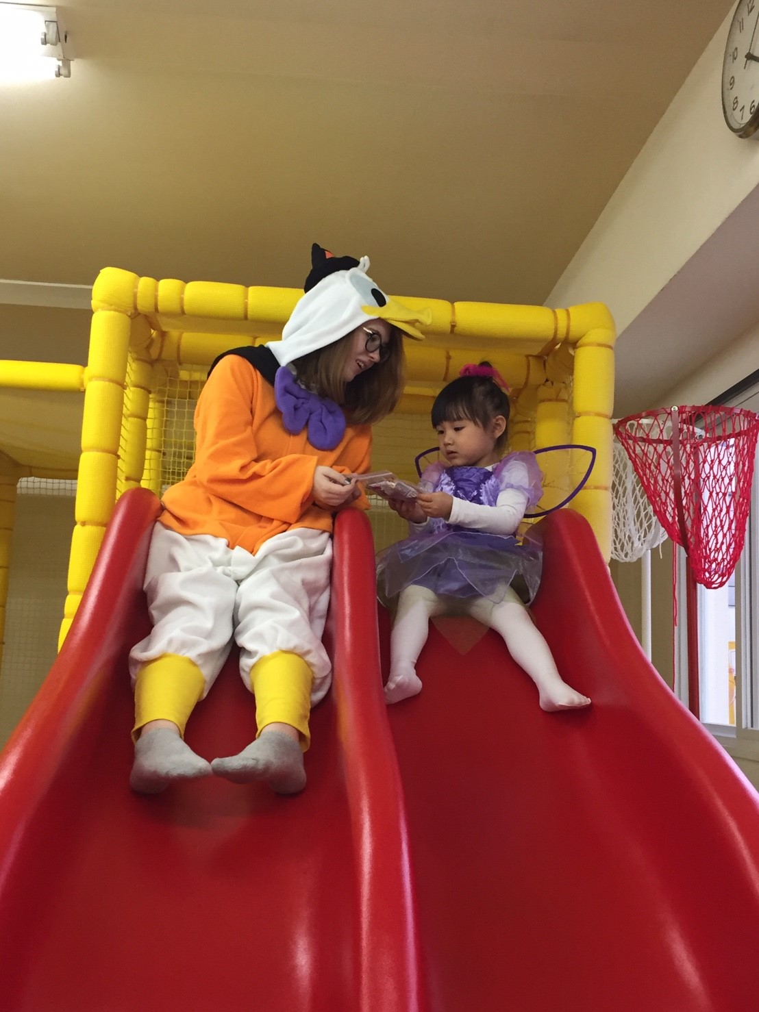 ケルシー先生をタッチしてトリックオアトリートです!みんな必死に追いかけていました!