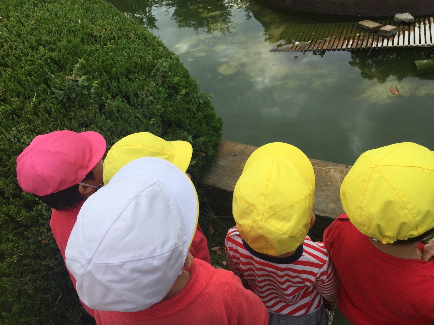 鳩やお魚、トンボ、アメンボを見て、みんなでたくさんお話しました!!